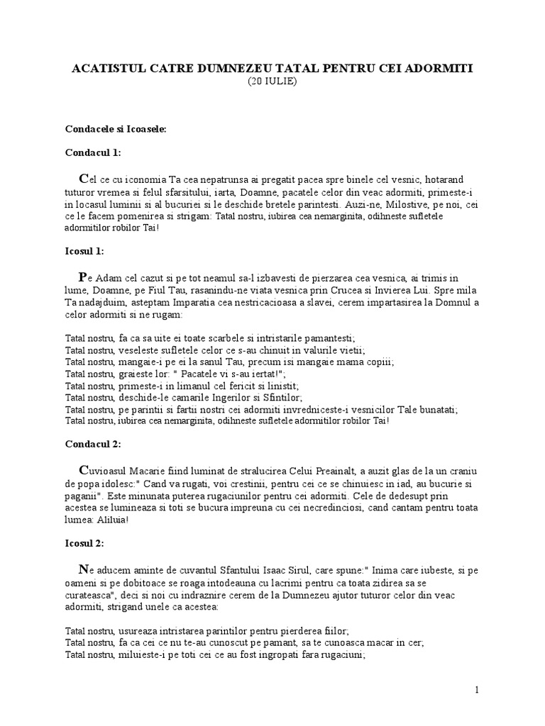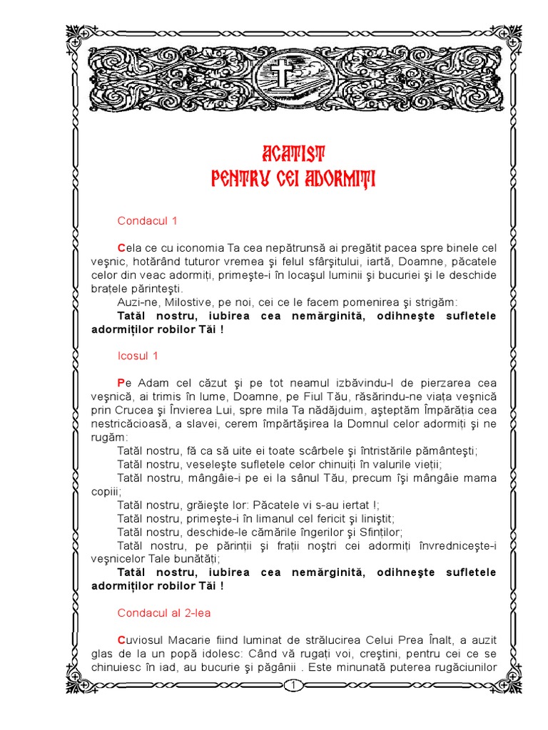 Condacul 1 Tatăl Nostru Iubirea Cea Nemărginită Odihneste Sufletele Adormiţilor Robilor Tăi