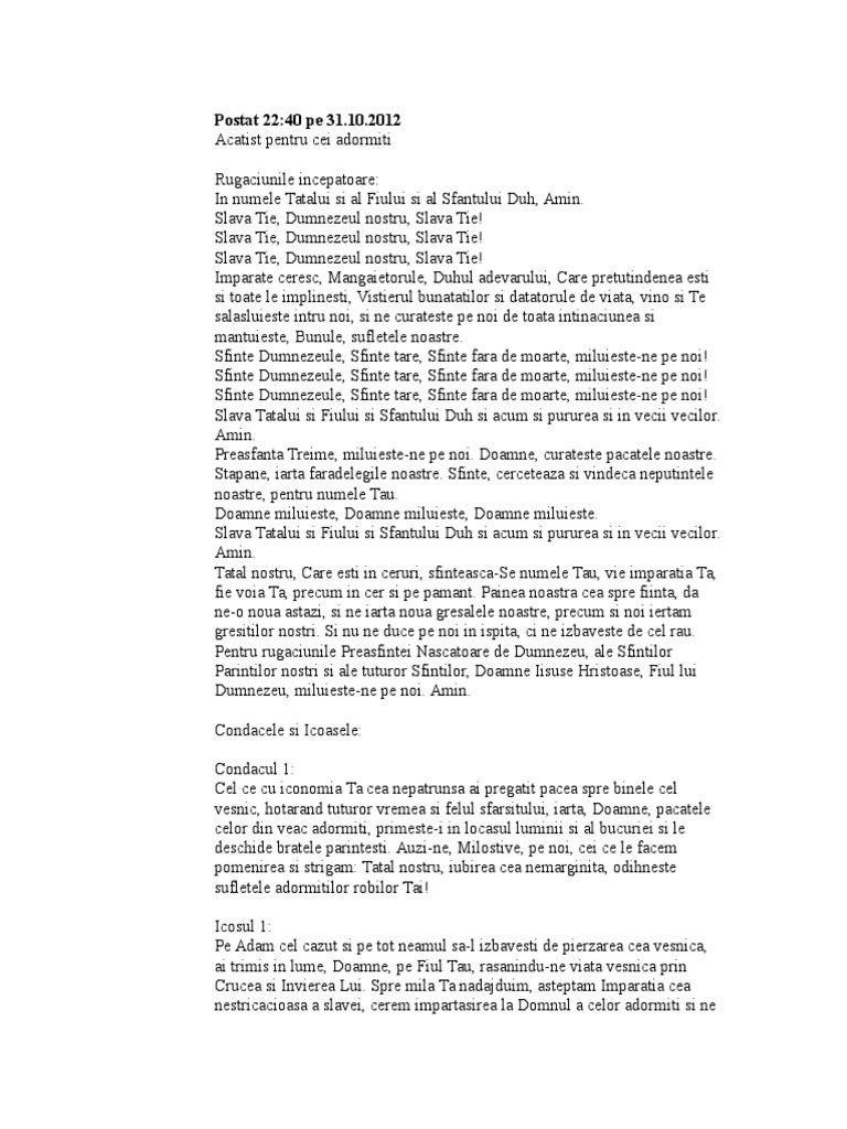 Acatistul Pentru Cei Adormiţi Acatistul Pentru Un Răposat Pdf Document