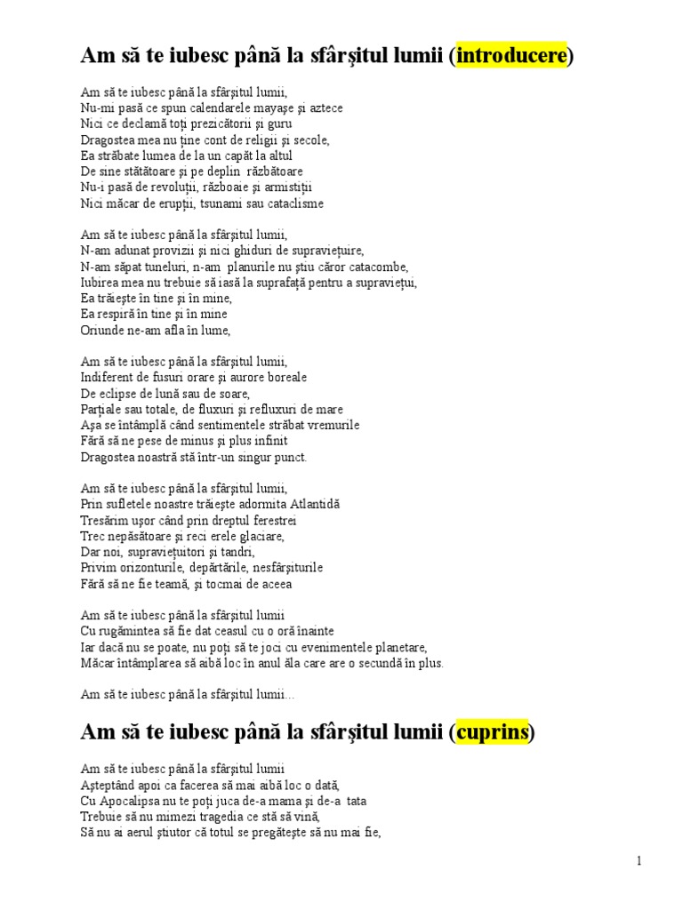 Am Să Te Iubesc Pană La Sfarsitul Lumii Introducere