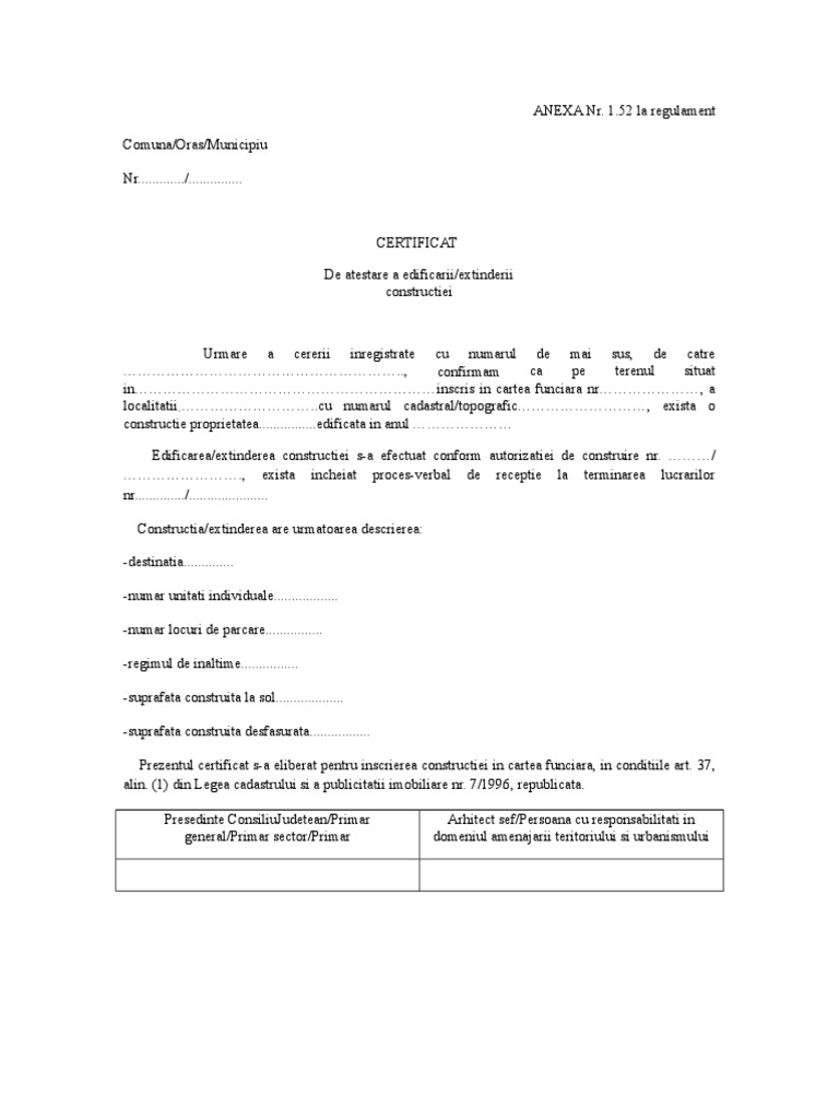 Certificat De Atestare A Edificarii Constructiei Model