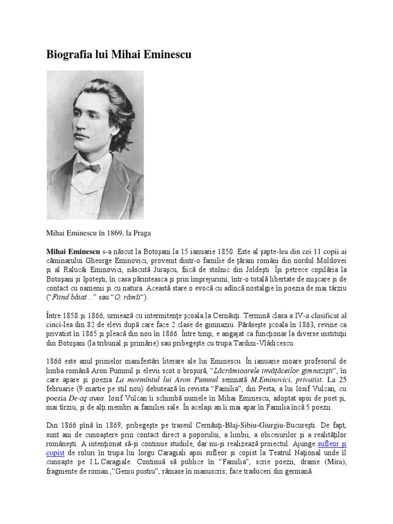 Viata Si Activitatea Lui Mihai Eminescu 1