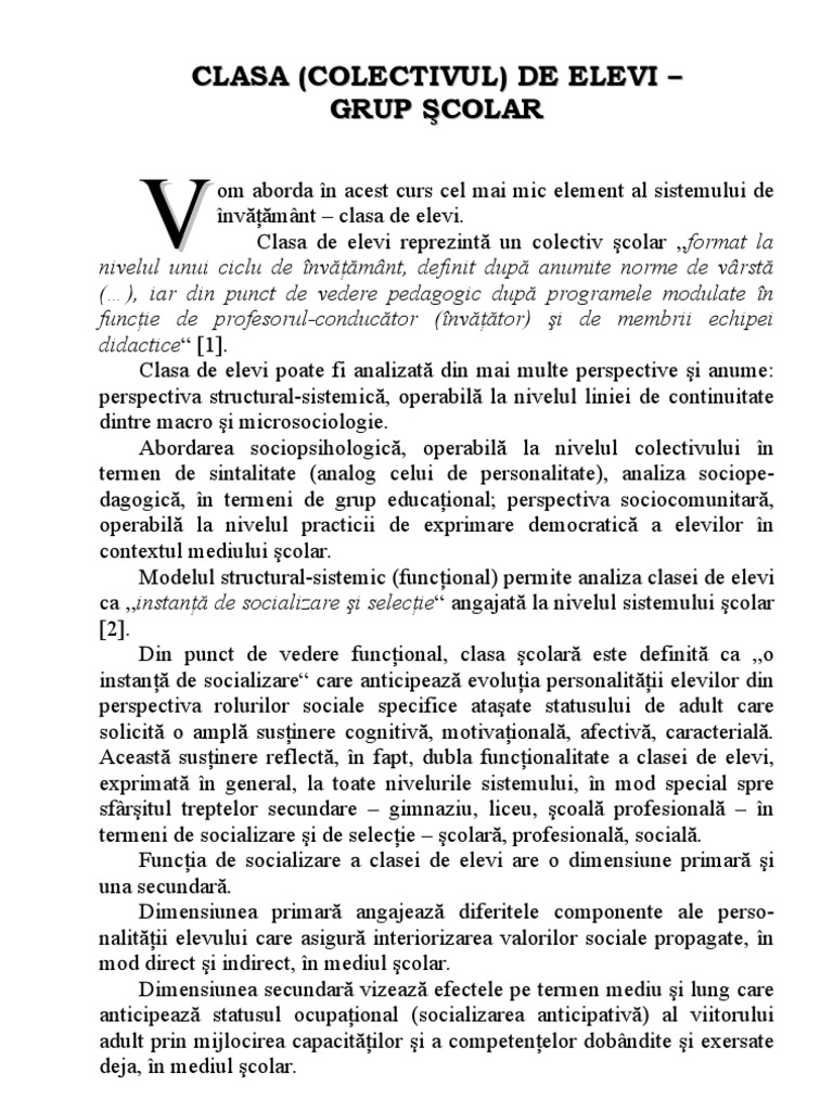Caracterizarea Clasei De Elevi