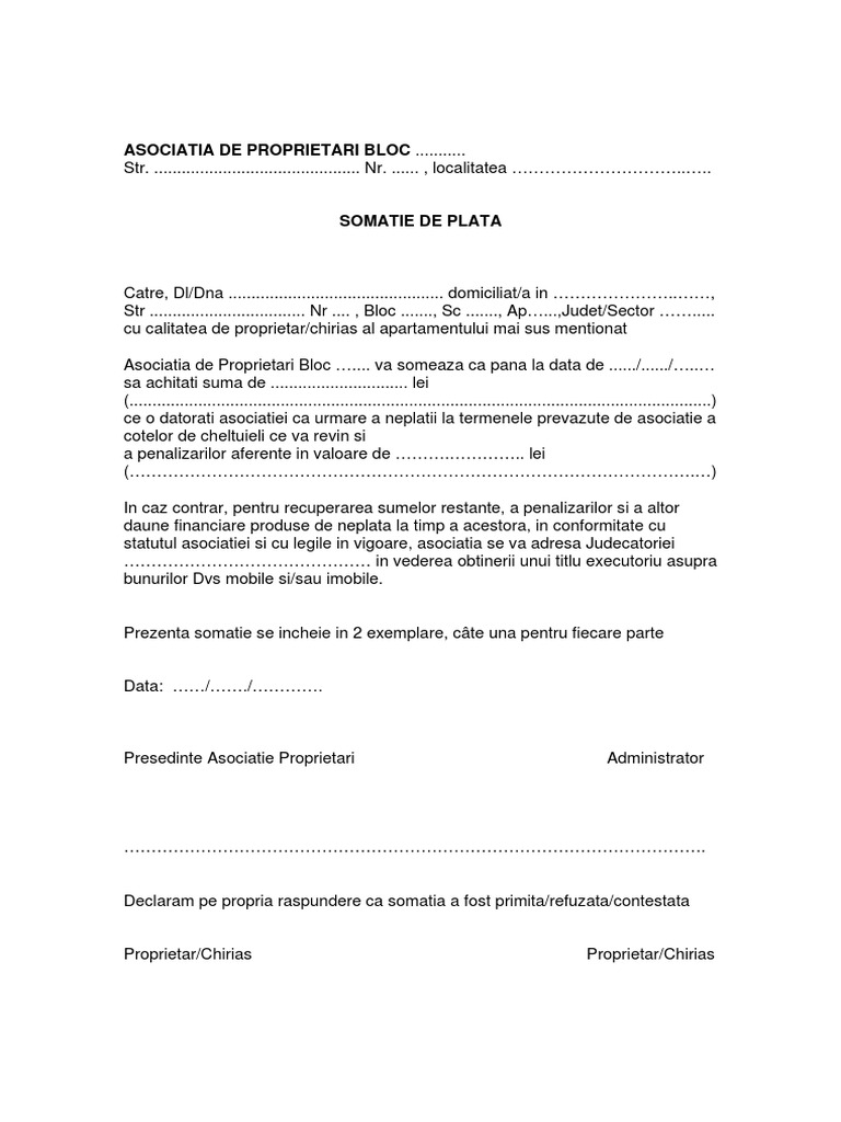 Cerere catre asociatia de proprietari. Microsoft word cerere de inscriere in asociatia de proprietari doc author. 4 20 2004 10 03 25 am. Numarul de luni sau nedeterminata conform h g. Va rog sa mi aprobati debransarea de la sistemul centralizat de alimentare cu energie termica in vederea montarii unei centrale termice de apartament sau unei alte surse de incalzire specificati sursa de incalzire.