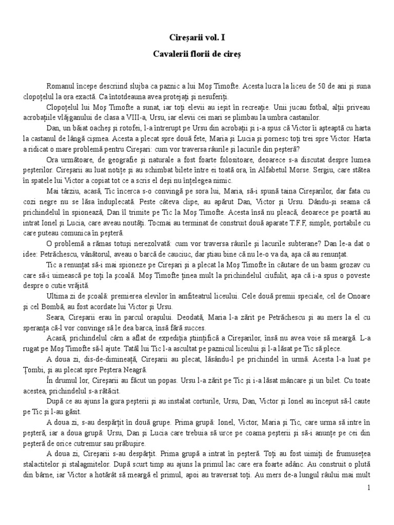Ciresarii Vol 1 Rezumat Pe Capitole