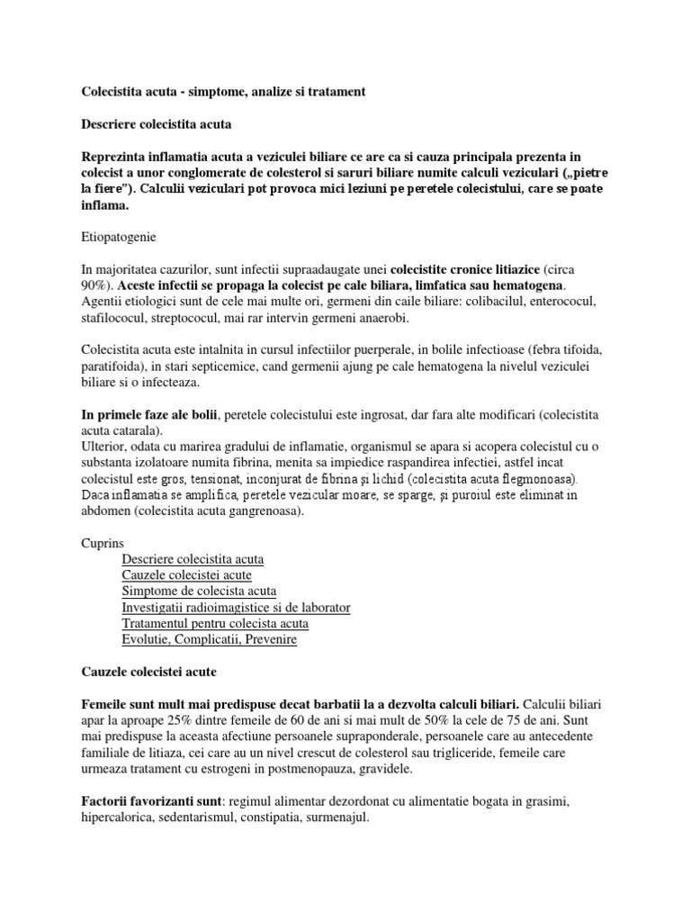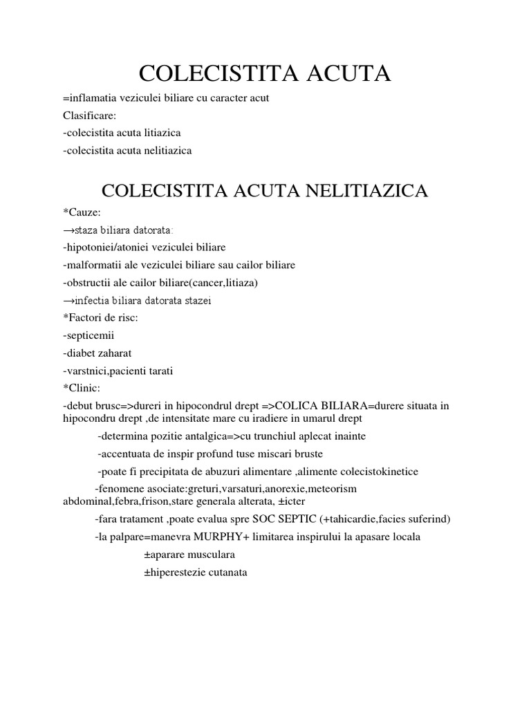Colecistita Acuta Definitie Diagnostic Tratament Docsity