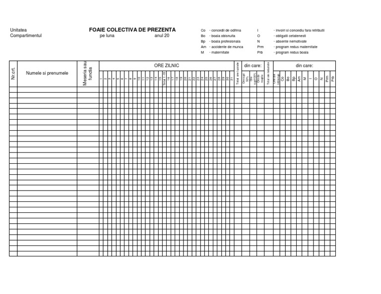 Foaie Colectiva De Prezenta Biroul Tau