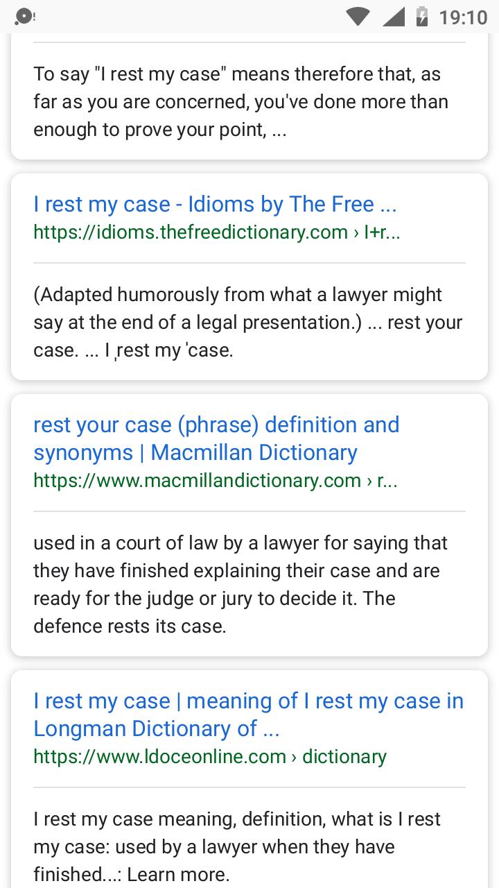What Is The Origin Of The Phrase I Rest My Case English Language Usage Stack Exchange