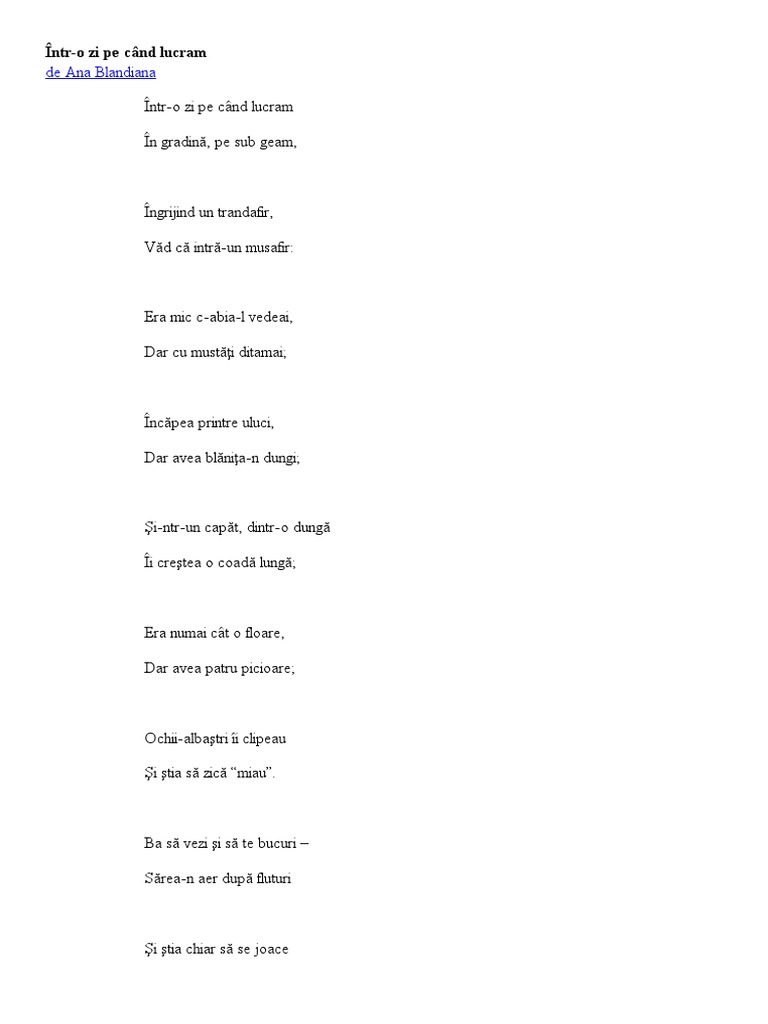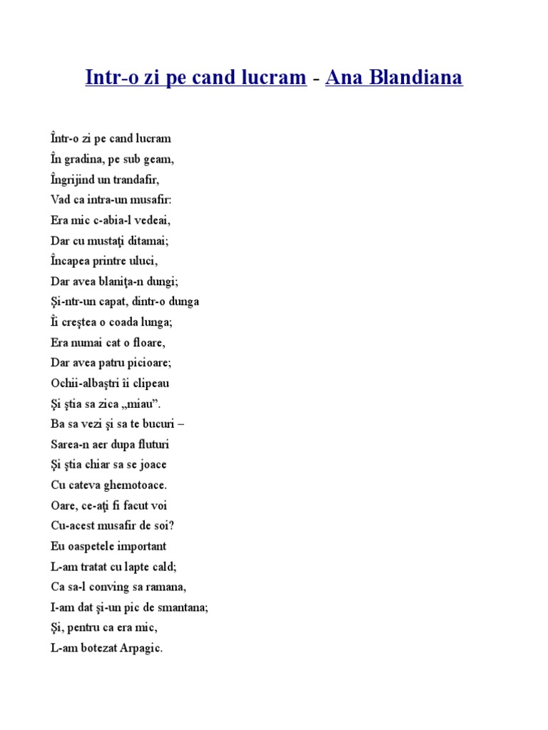 Intr O Zi Pe Cand Lucram Ana Blandiana