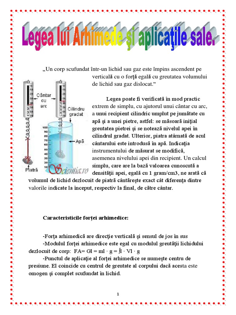 Legea Lui Arhimede Si Aplicatiile Sale