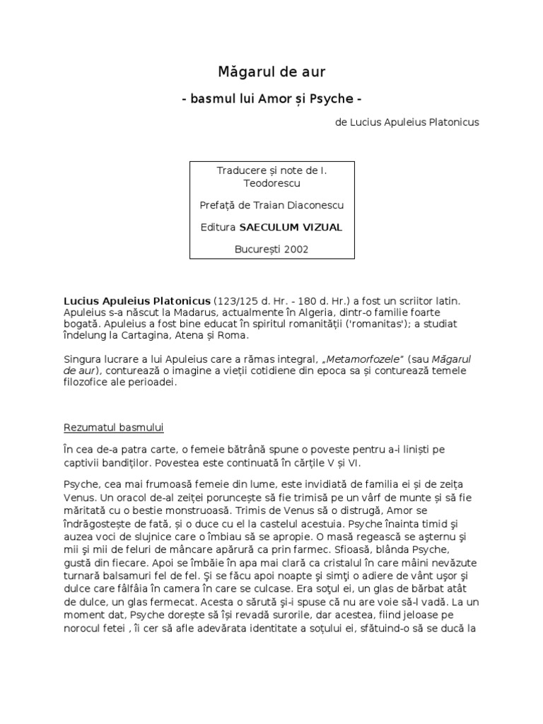 Apuleiu Măgarul De Aur Rezumat Pe Capitol Metamorfoză Lucius Apulei Sau Măgar Auriu