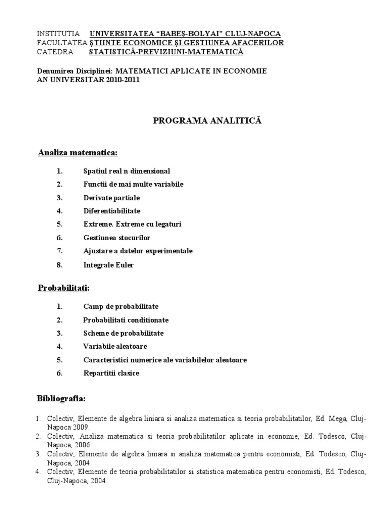 Matematici Aplicate In Economie Subiecte Si Aplicatii Pdf