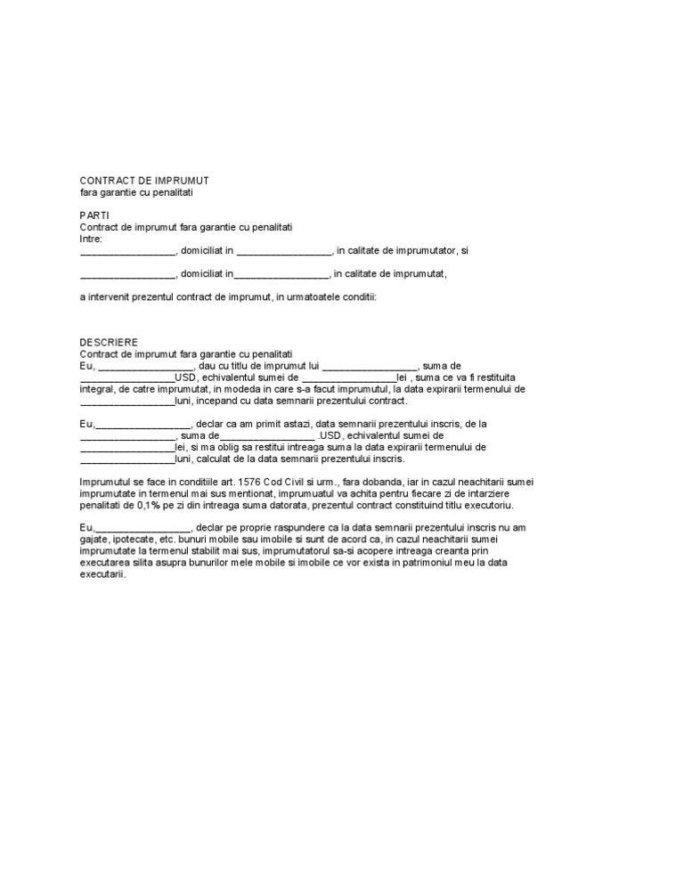 Model Contract De Imprumut Intre Persoane Fizice Si Juridice