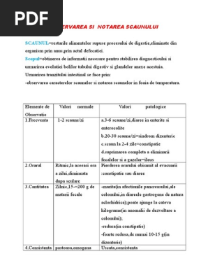 Scaunul materiile fecale resturile alimentelor supuse procesului de digestie si eliminate din organism prin anus prin actul defecatiei. Pentru fiecare linie orizontala a foii de temperatura se socotesc 100 ml urina. Măsurarea notarea şi interpretarea valorilor de temperatură reprezintă activități uzuale pe care fiecare asistent medical trebuie să știe să le execute cât mai corect într un timp foarte scurt.
