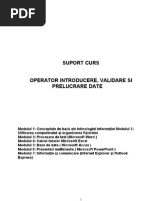 Curs Operator Introducere Validare și Prelucrare Date Centrul De Calificare Feg