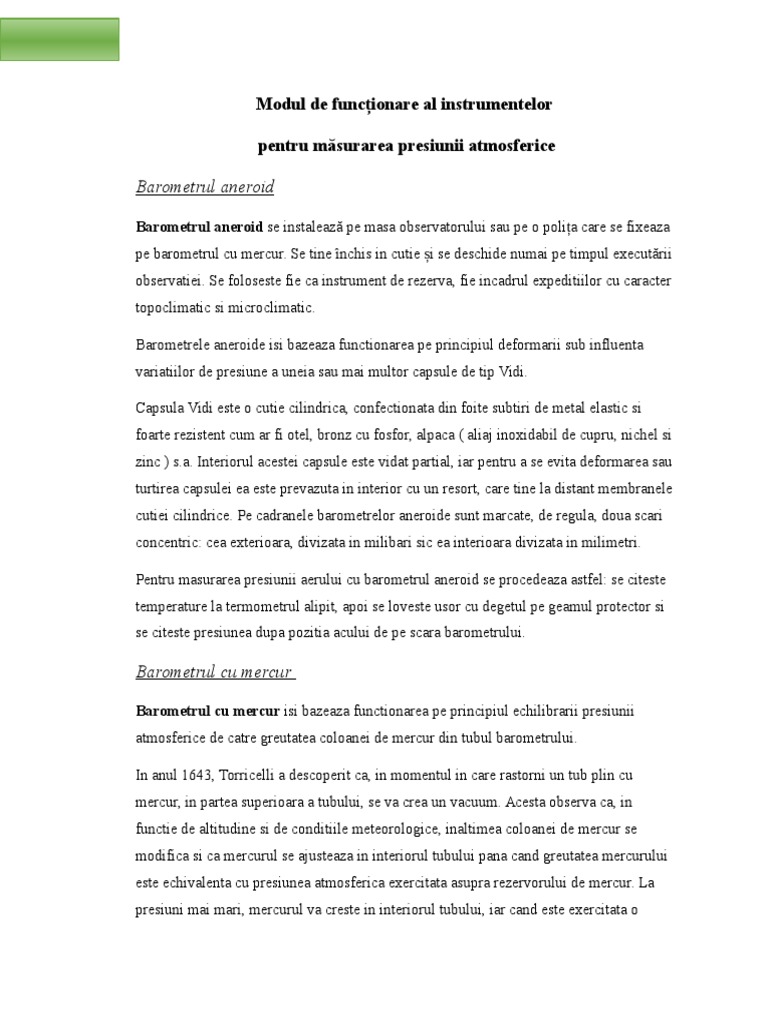 Climatologie Aparate Si Instrumente Pentru Masurarea Presiunii Atmosferice