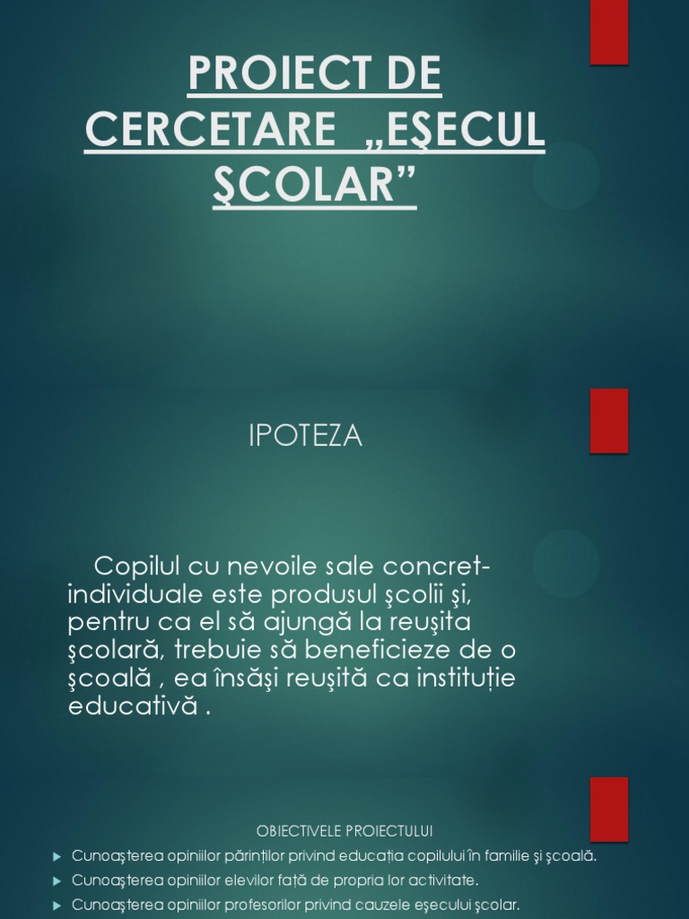 Proiect De Cercetare Pedagogica Esecul Scolar