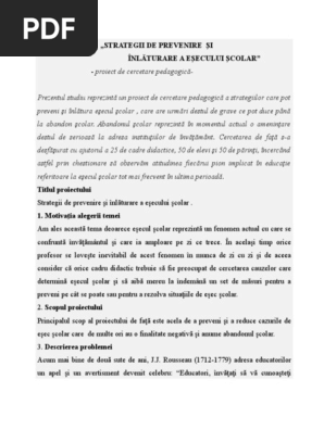 61689944 56551892 Esecul Scolar Proiect De Cercetare Pedagogic A 2 Doc
