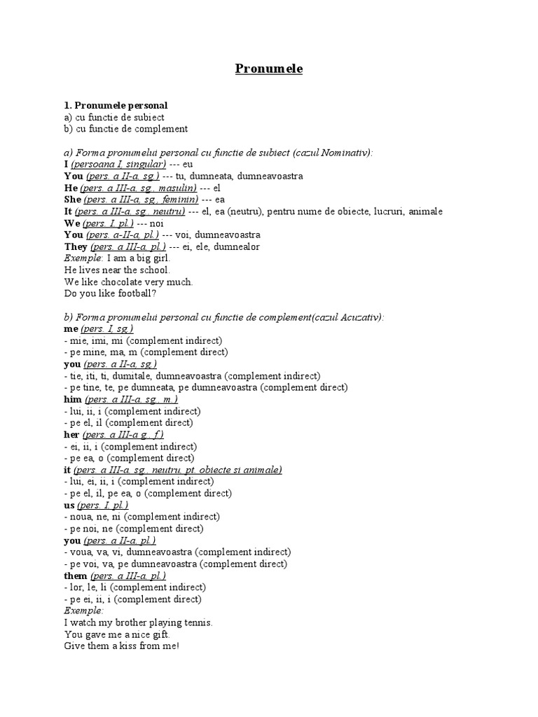 Pronumele Si Verbul Doc Grammatical Conjugation Syntax