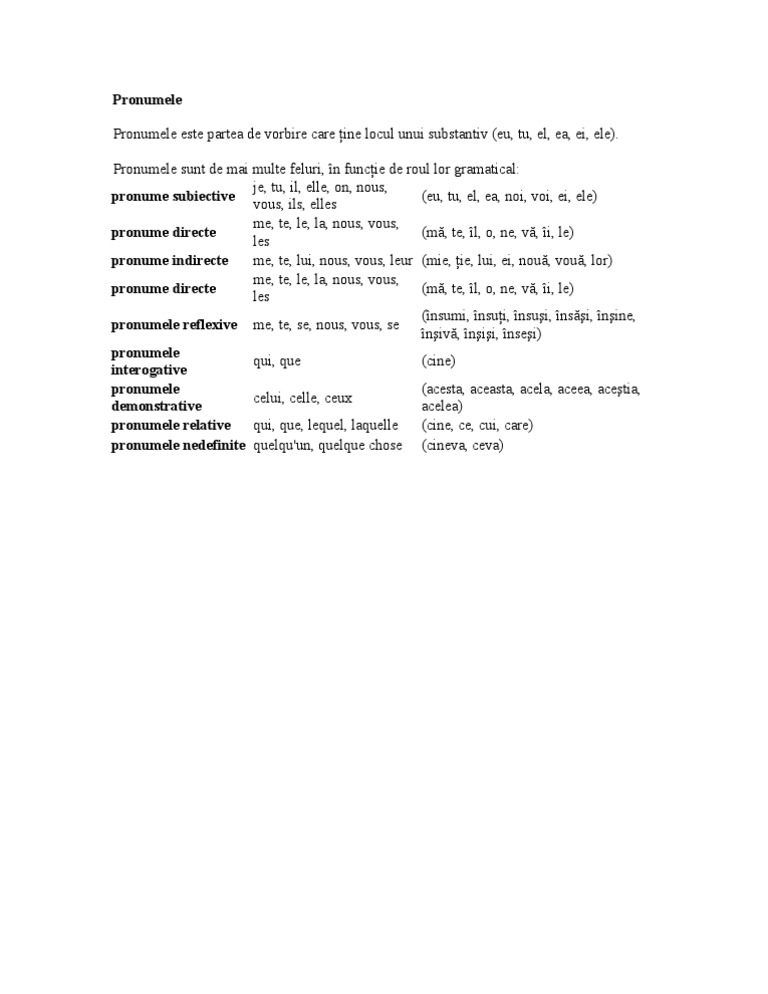 In Limba Franceză Pronumele Franceze Les Pronoms Funcțiile Pronumelor Personale In Franceză