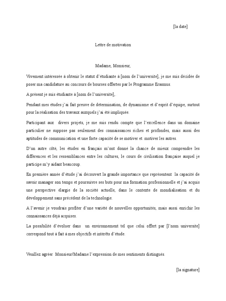 Model Scrisoare De Motivatie Bursa Erasmus Franceza