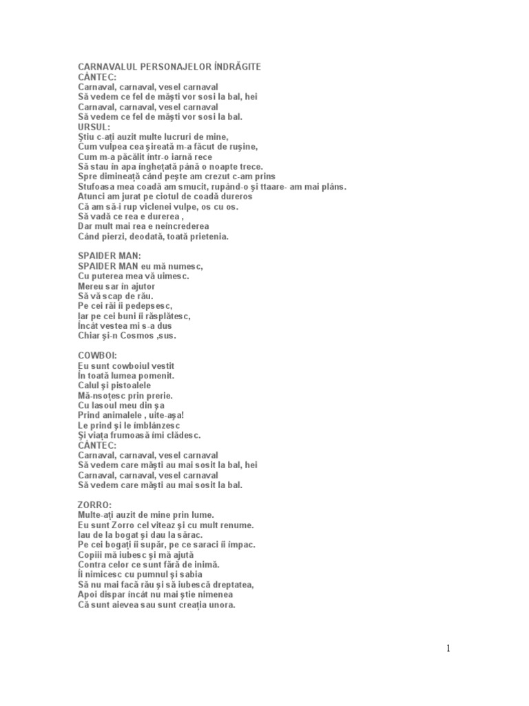 Serbare Carnaval Roluri