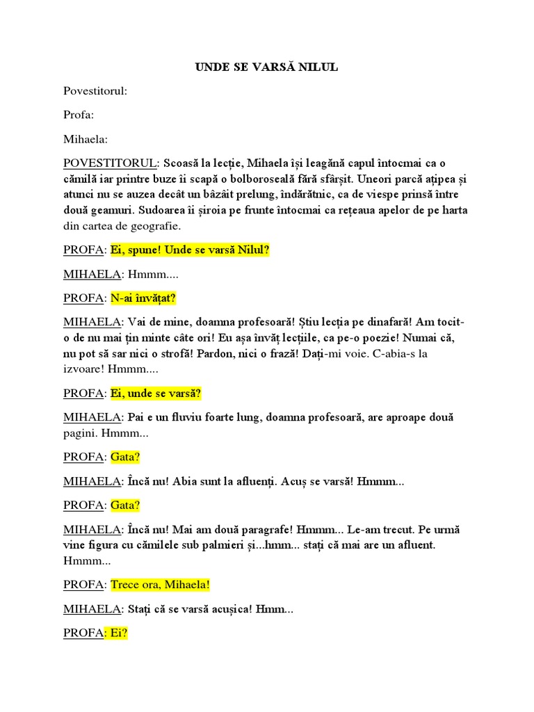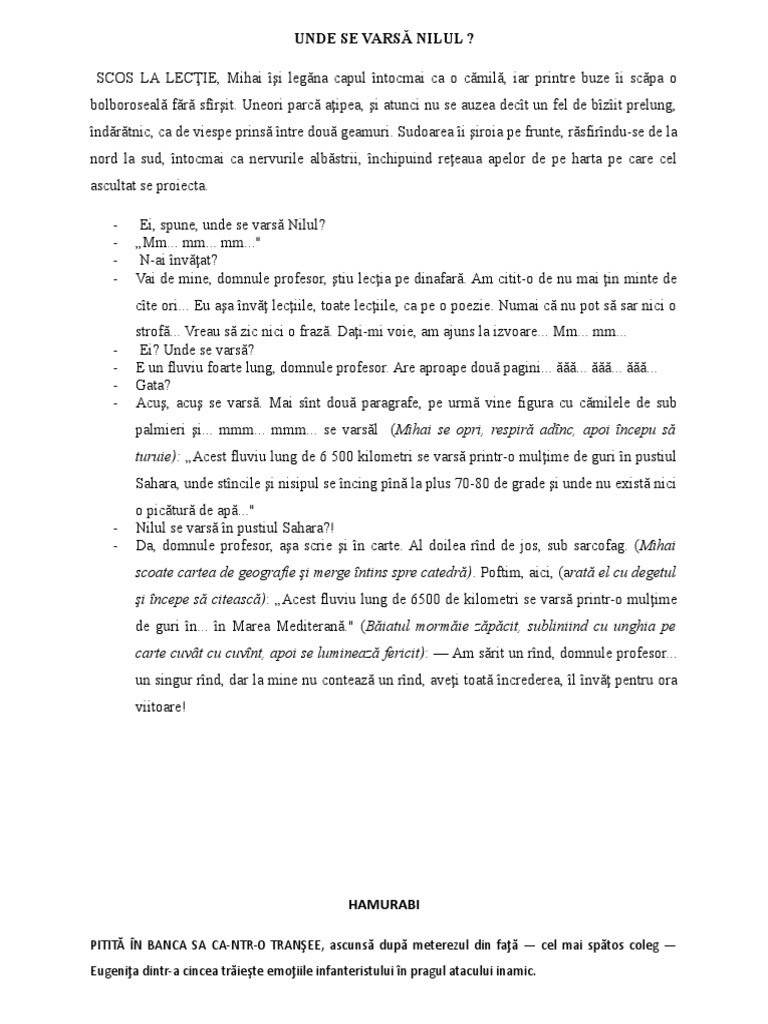 Faceți Va Rog Demonstrație Pe Gen Epic A Textului Unde Se Varsă Nilul Brainly Ro