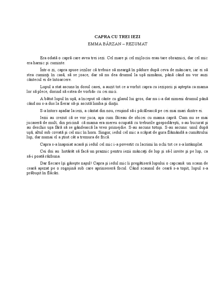 1 Capra Cu Trei Iezi Rezumat Emma Barzan